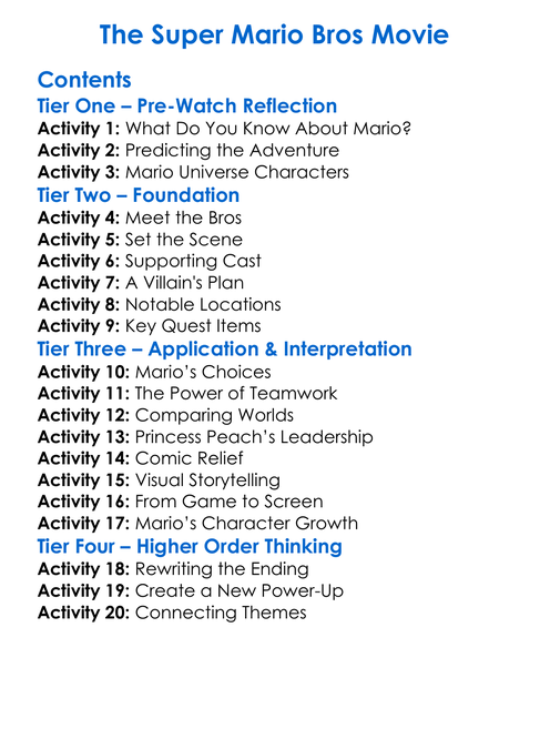 The Super Mario Bros Movie Worksheet Activity Booklet