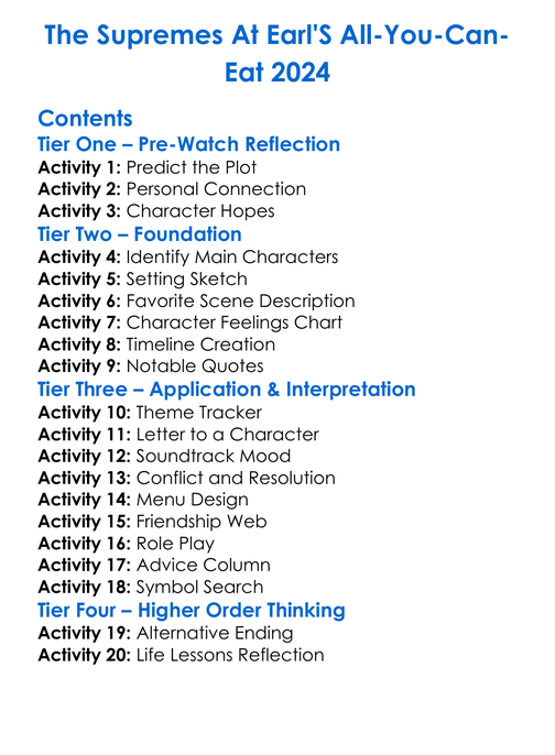The Supremes At Earls All-You-Can-Eat 2024 Worksheet Activity Booklet