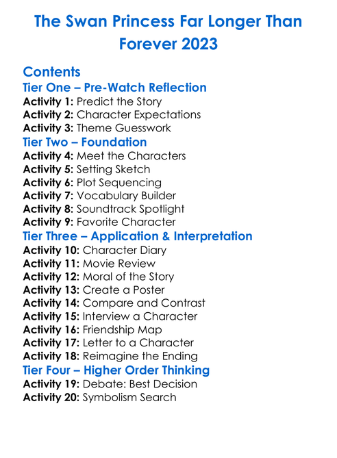 The Swan Princess Far Longer Than Forever 2023 Worksheet Activity Booklet