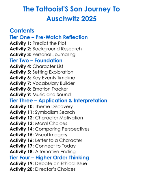 The Tattooists Son Journey To Auschwitz 2025 Worksheet Activity Booklet