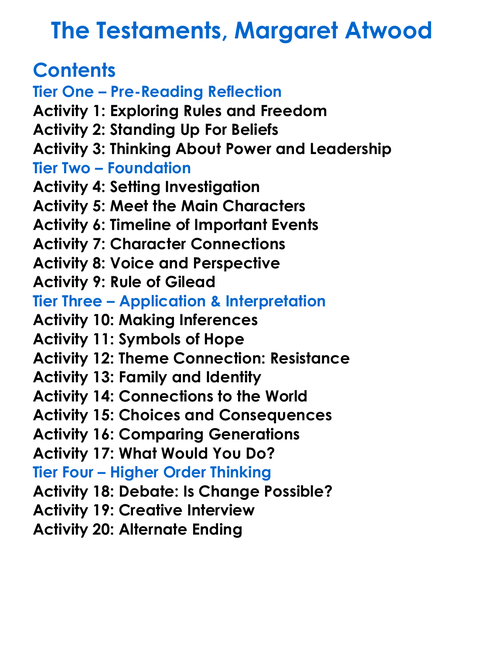 The Testaments Margaret Atwood Worksheet Activity Booklet