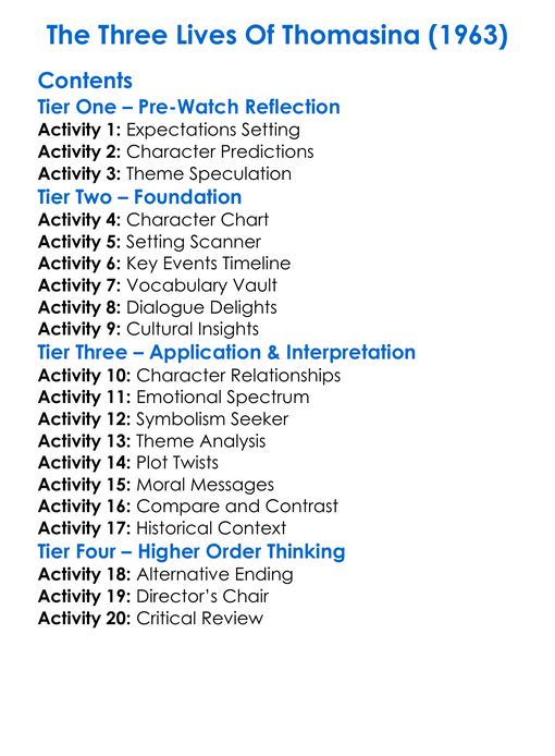 The Three Lives Of Thomasina 1963 Worksheet Activity Booklet