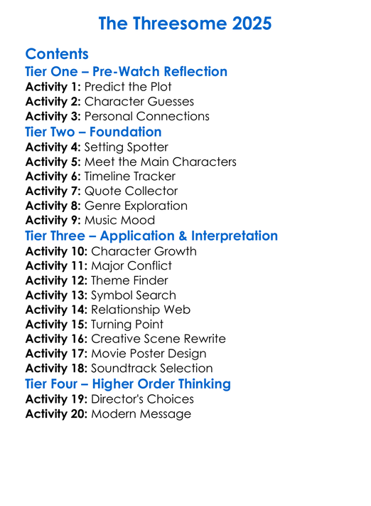 The Threesome 2025 Worksheet Activity Booklet