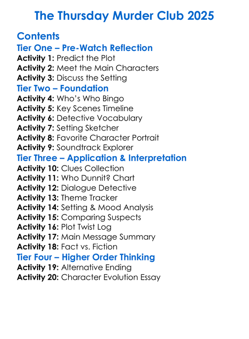 The Thursday Murder Club 2025 Worksheet Activity Booklet
