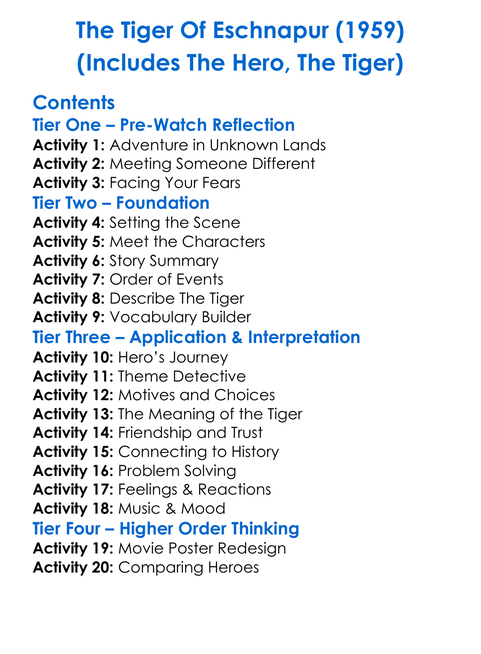 The Tiger Of Eschnapur 1959 Includes The Hero The Tiger Worksheet Activity Booklet