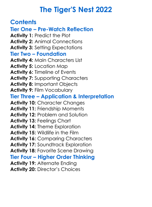 The Tigers Nest 2022 Worksheet Activity Booklet