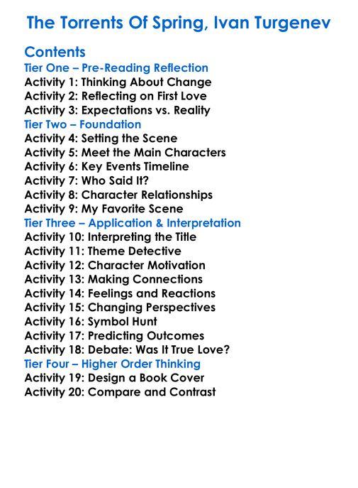 The Torrents Of Spring Ivan Turgenev Worksheet Activity Booklet