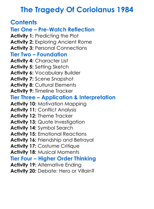 The Tragedy Of Coriolanus 1984 Worksheet Activity Booklet