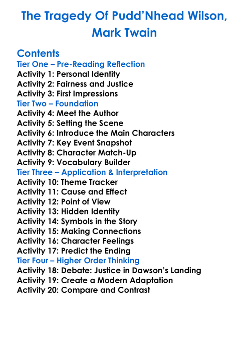 The Tragedy Of Puddnhead Wilson Mark Twain Worksheet Activity Booklet