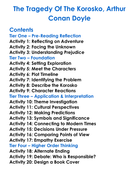 The Tragedy Of The Korosko Arthur Conan Doyle Worksheet Activity Booklet