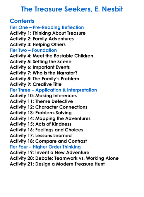 The Treasure Seekers E Nesbit Worksheet Activity Booklet