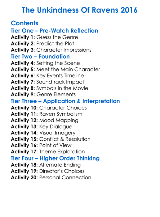 The Unkindness Of Ravens 2016 Worksheet Activity Booklet