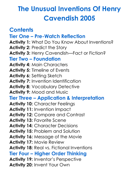 The Unusual Inventions Of Henry Cavendish 2005 Worksheet Activity Booklet
