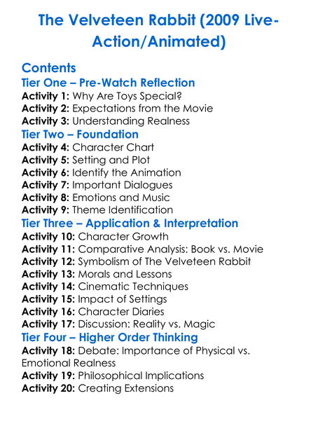 The Velveteen Rabbit 2009 Live-Actionanimated Worksheet Activity Booklet