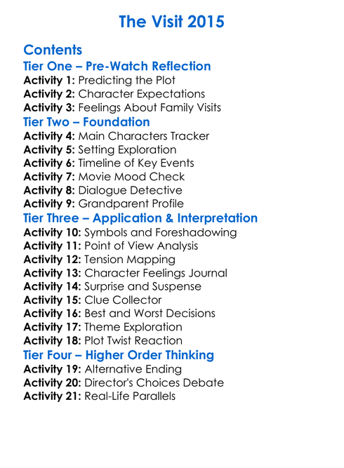 The Visit 2015 Worksheet Activity Booklet
