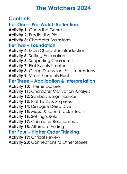 The Watchers 2024 Worksheet Activity Booklet