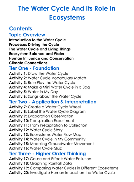 The Water Cycle And Its Role In Ecosystems Worksheet Activity Booklet