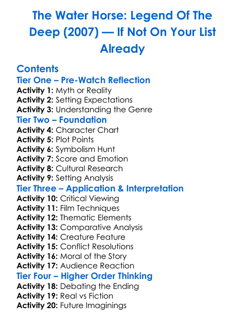 The Water Horse Legend Of The Deep 2007 If Not On Your List Already Worksheet Activity Booklet