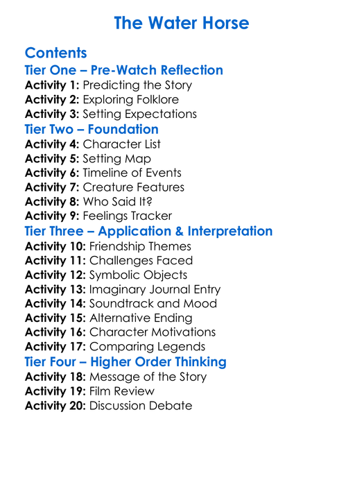 The Water Horse Worksheet Activity Booklet