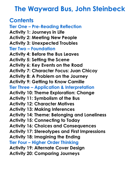 The Wayward Bus John Steinbeck Worksheet Activity Booklet