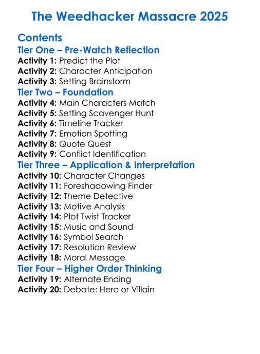 The Weedhacker Massacre 2025 Worksheet Activity Booklet