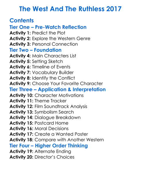 The West And The Ruthless 2017 Worksheet Activity Booklet