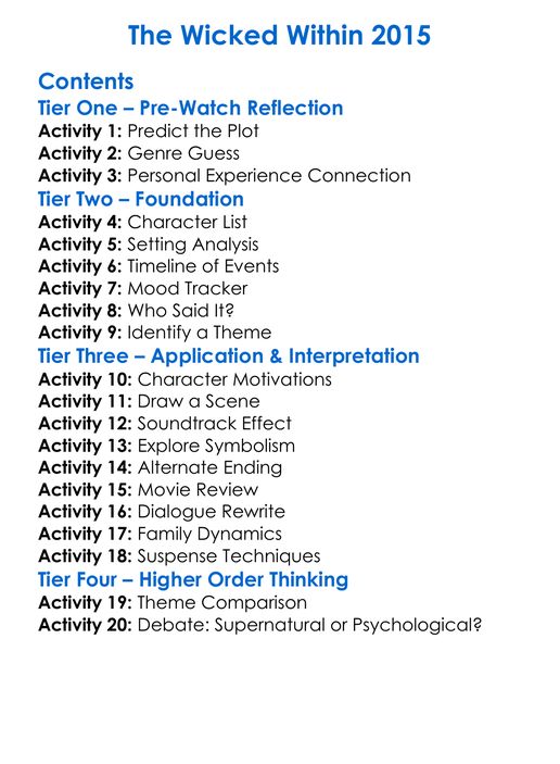 The Wicked Within 2015 Worksheet Activity Booklet