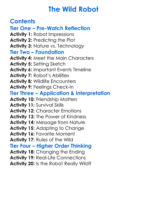 The Wild Robot Worksheet Activity Booklet