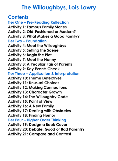 The Willoughbys Lois Lowry Worksheet Activity Booklet