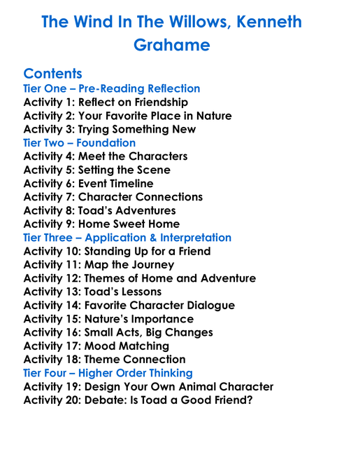 The Wind In The Willows Kenneth Grahame Worksheet Activity Booklet