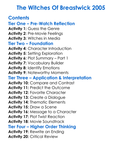 The Witches Of Breastwick 2005 Worksheet Activity Booklet