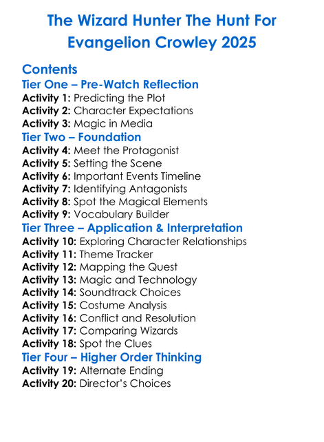 The Wizard Hunter The Hunt For Evangelion Crowley 2025 Worksheet Activity Booklet