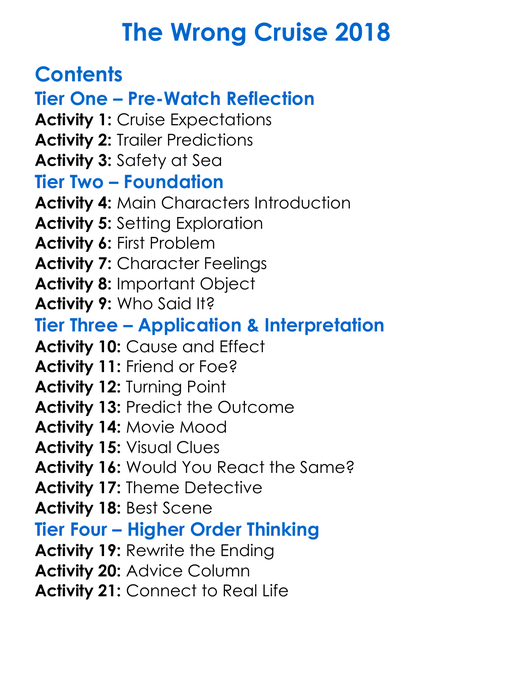 The Wrong Cruise 2018 Worksheet Activity Booklet