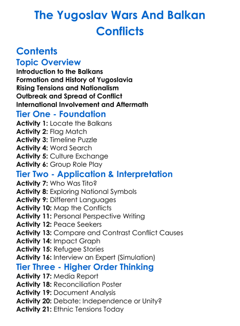 The Yugoslav Wars And Balkan Conflicts Worksheet Activity Booklet