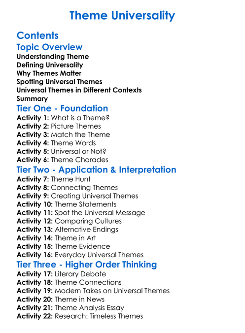 Theme Universality Worksheet Activity Booklet