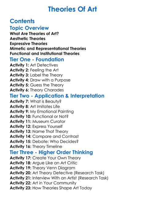 Theories Of Art Worksheet Activity Booklet