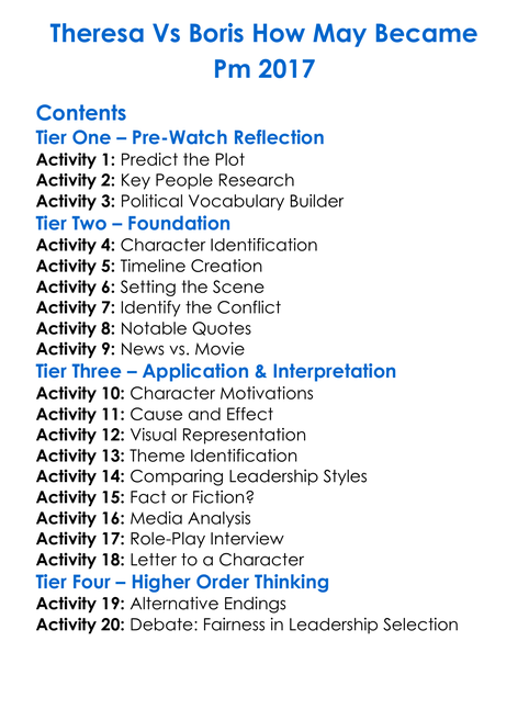 Theresa Vs Boris How May Became Pm 2017 Worksheet Activity Booklet