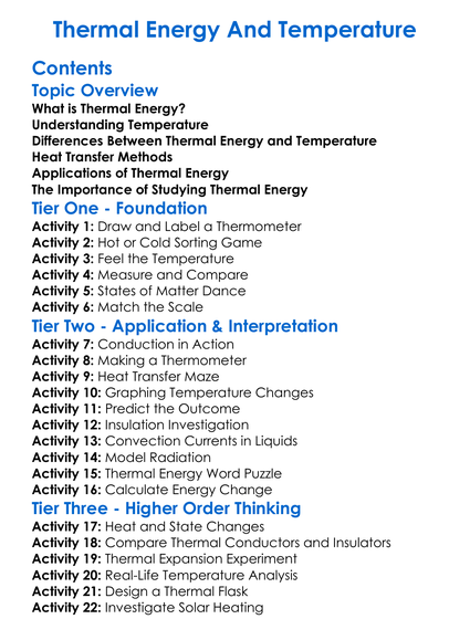 Thermal Energy And Temperature Worksheet Activity Booklet
