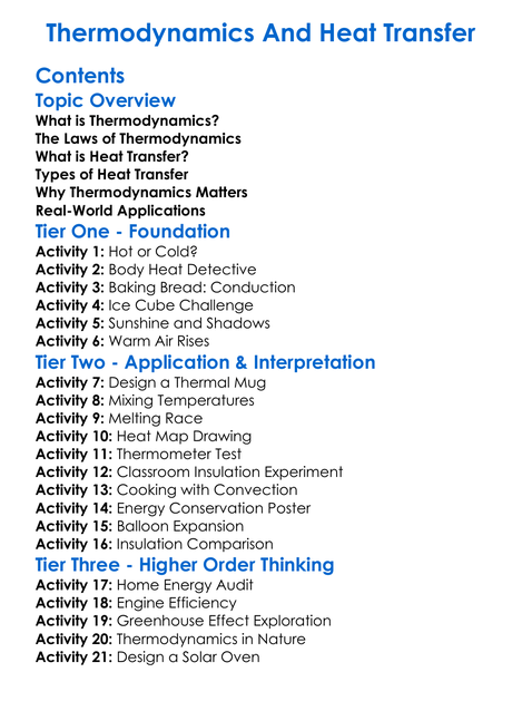 Thermodynamics And Heat Transfer Worksheet Activity Booklet