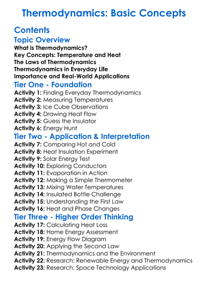 Thermodynamics Basic Concepts Worksheet Activity Booklet