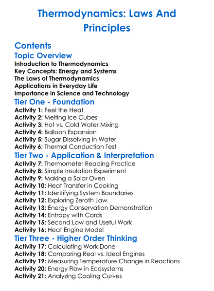 Thermodynamics Laws And Principles Worksheet Activity Booklet