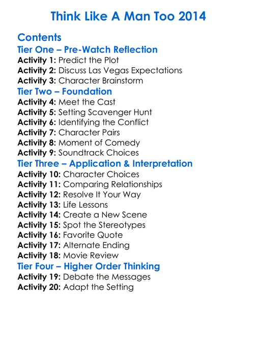 Think Like A Man Too 2014 Worksheet Activity Booklet