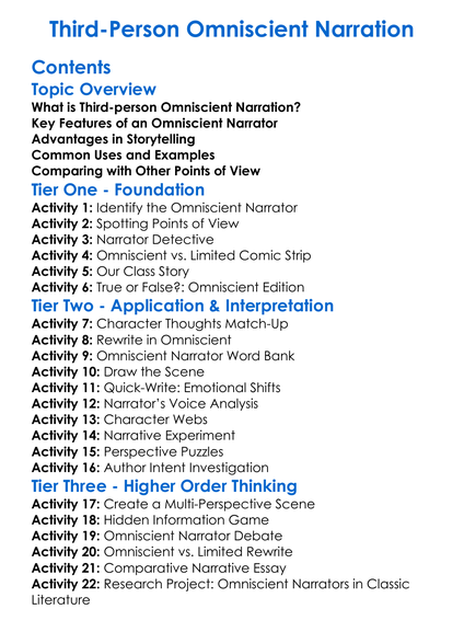 Third-Person Omniscient Narration Worksheet Activity Booklet