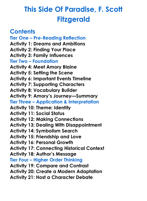 This Side Of Paradise F Scott Fitzgerald Worksheet Activity Booklet