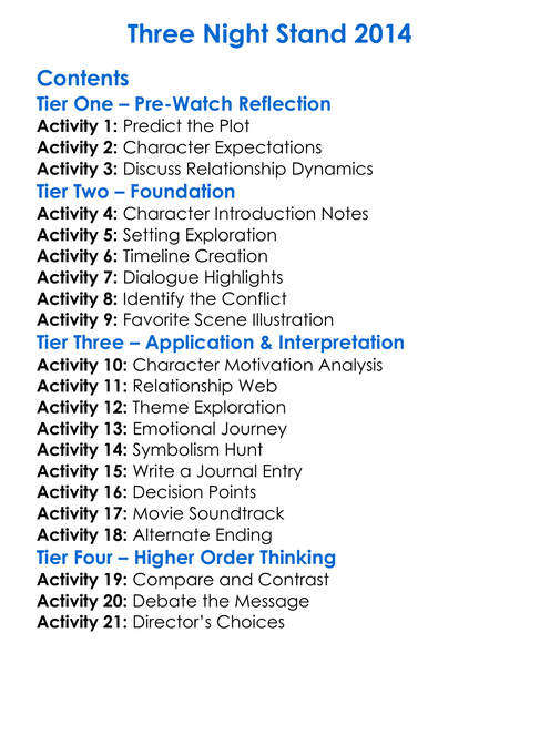 Three Night Stand 2014 Worksheet Activity Booklet