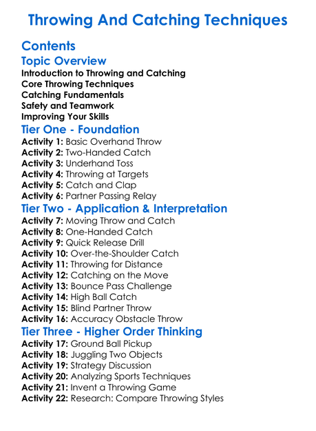 Throwing And Catching Techniques Worksheet Activity Booklet