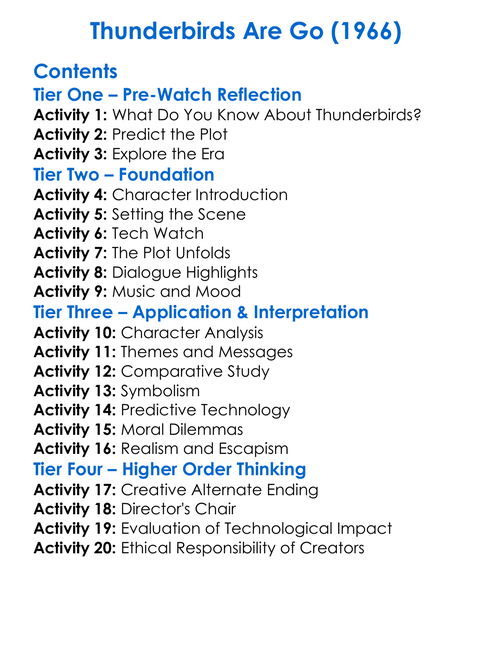 Thunderbirds Are Go 1966 Worksheet Activity Booklet