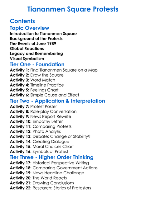 Tiananmen Square Protests Worksheet Activity Booklet
