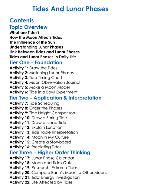 Tides And Lunar Phases Worksheet Activity Booklet