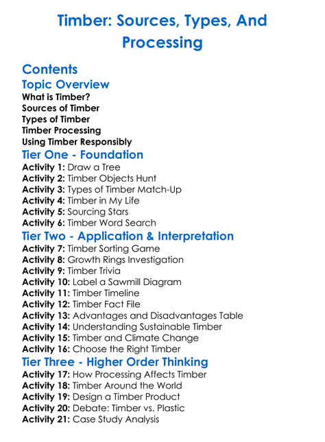 Timber Sources Types And Processing Worksheet Activity Booklet